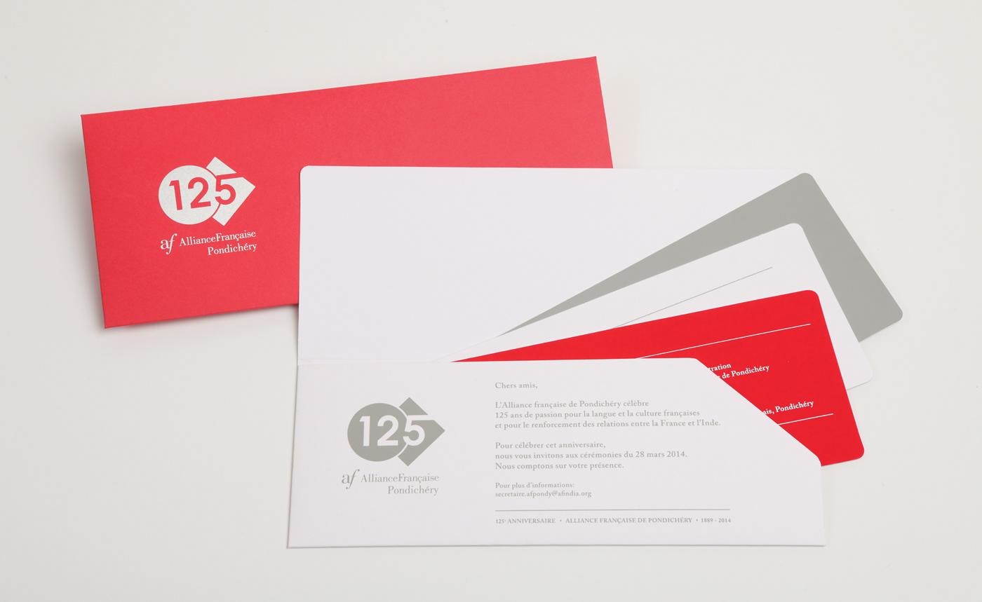 Identity design and communication design for Alliance Française de Pondichéry celebrating their 125th year anniversary.