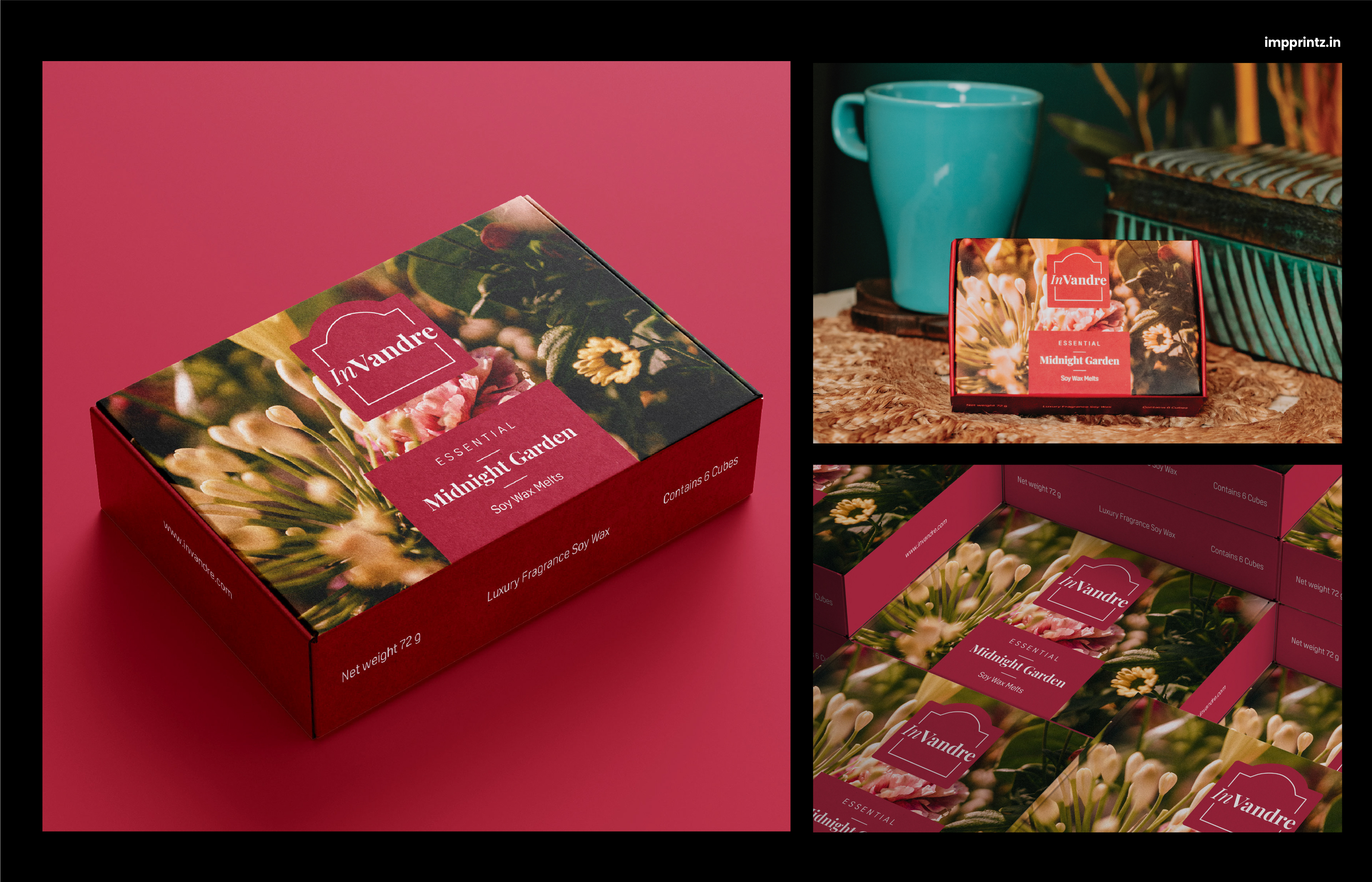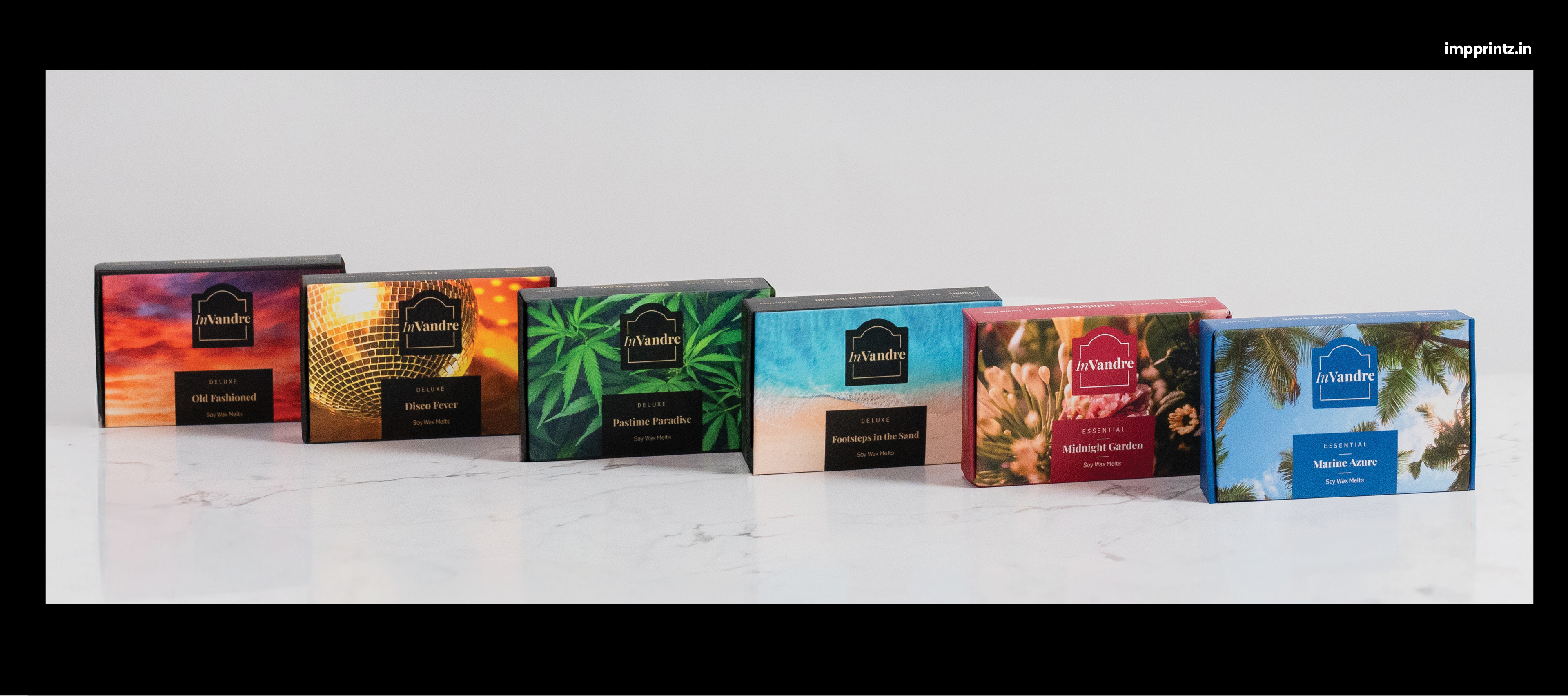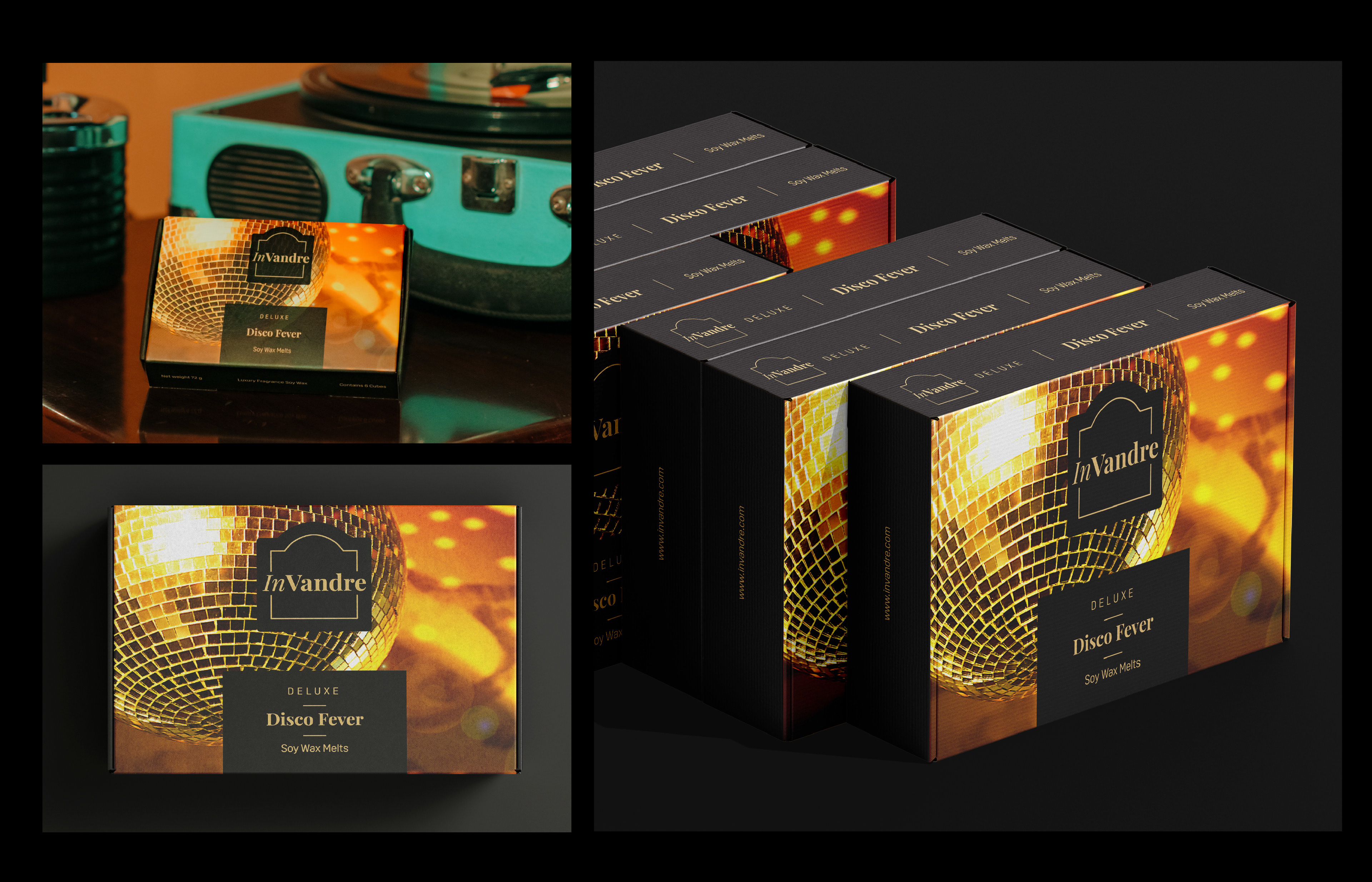 To launch their premium line of perfumed wax melts Invandre approached us to design their identity and packaging.