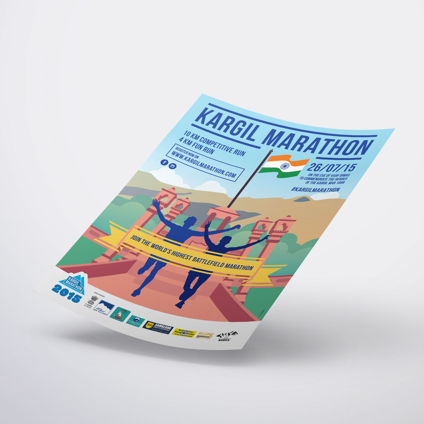 Logo design and communication design for the first marathon held in Kargil, Ladakh. The marathon is on 'Vijay Divas', the day when India's victory of the Kargil war is celebrated.