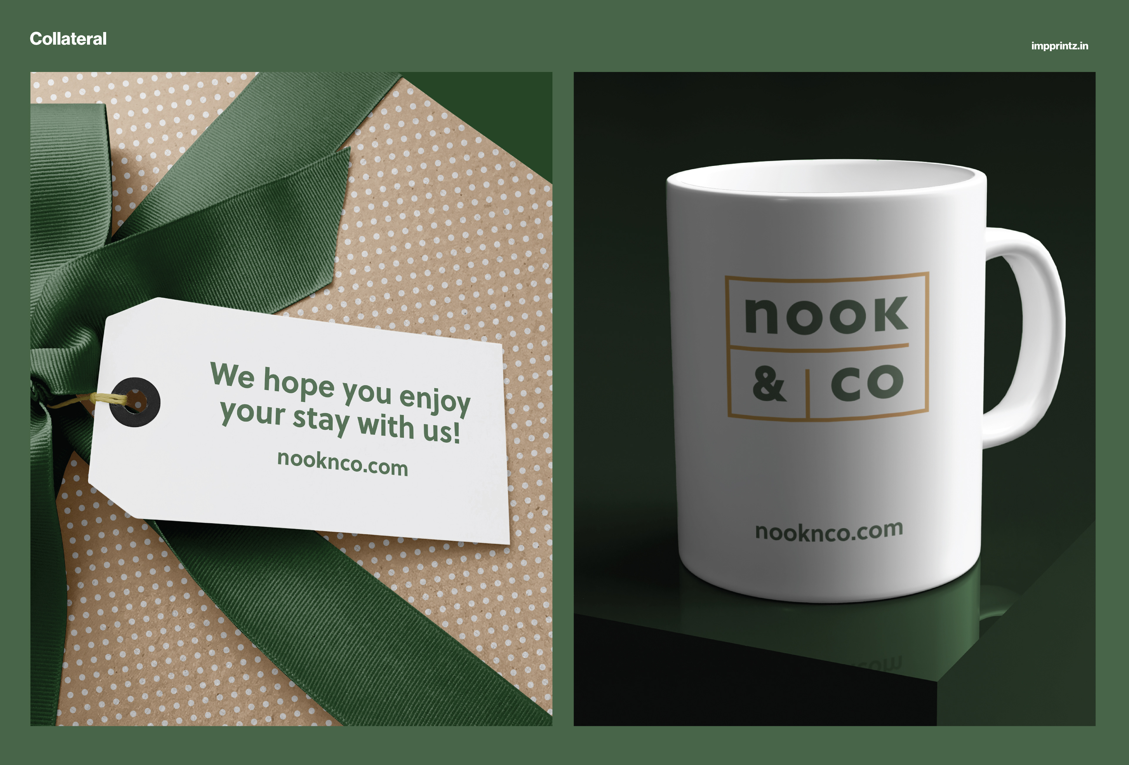 The colour palette uses a seaweed green paired with a deep mustard. Positive, simple and warm - a feeling that resonates well with their curated spaces.