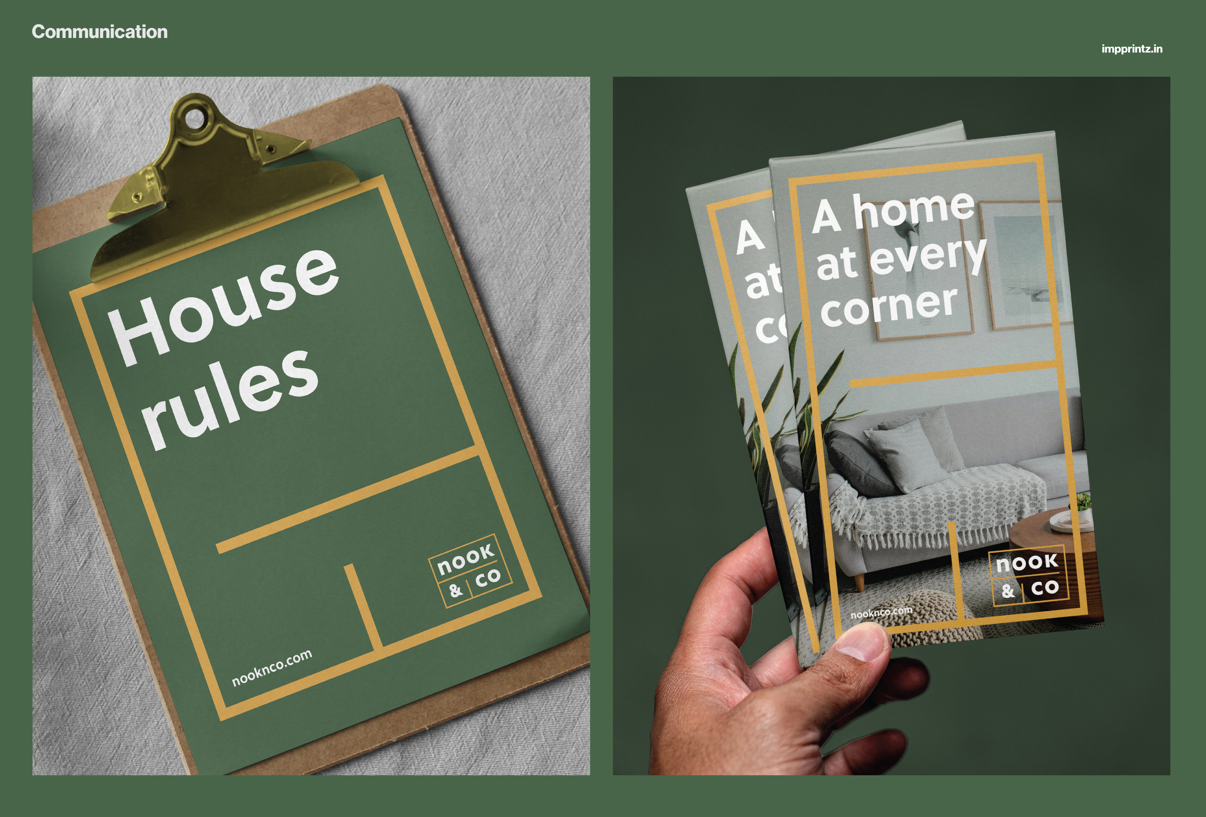 Impprintz designed an identity inspired from the concept of a simplified floor plan. The concept further extends as a versatile graphic device - a frame to hold or highlight information in an interactive way. The word-mark is set in lowercase, using a geometric font - for a human and pleasant appeal.