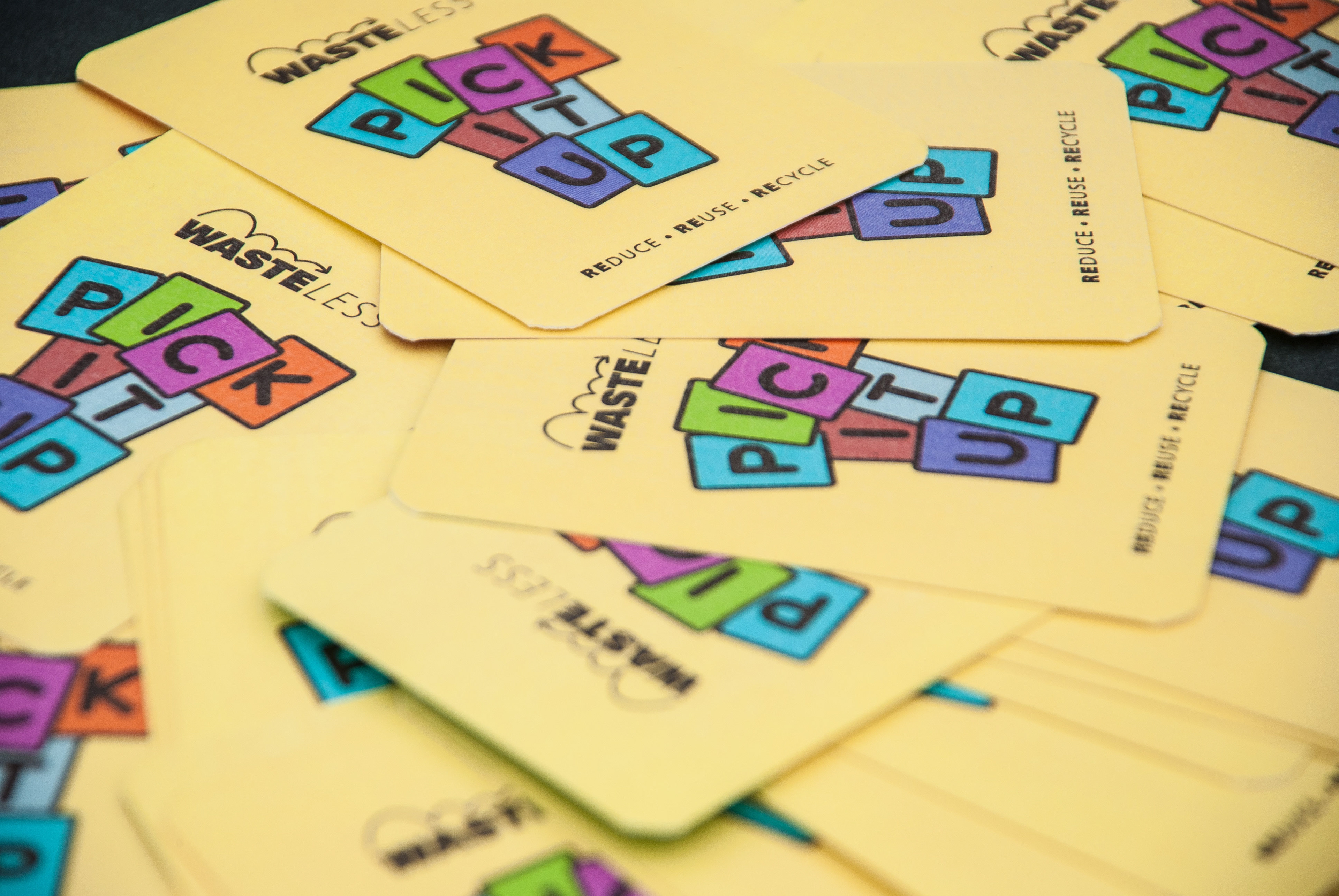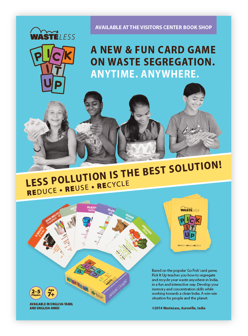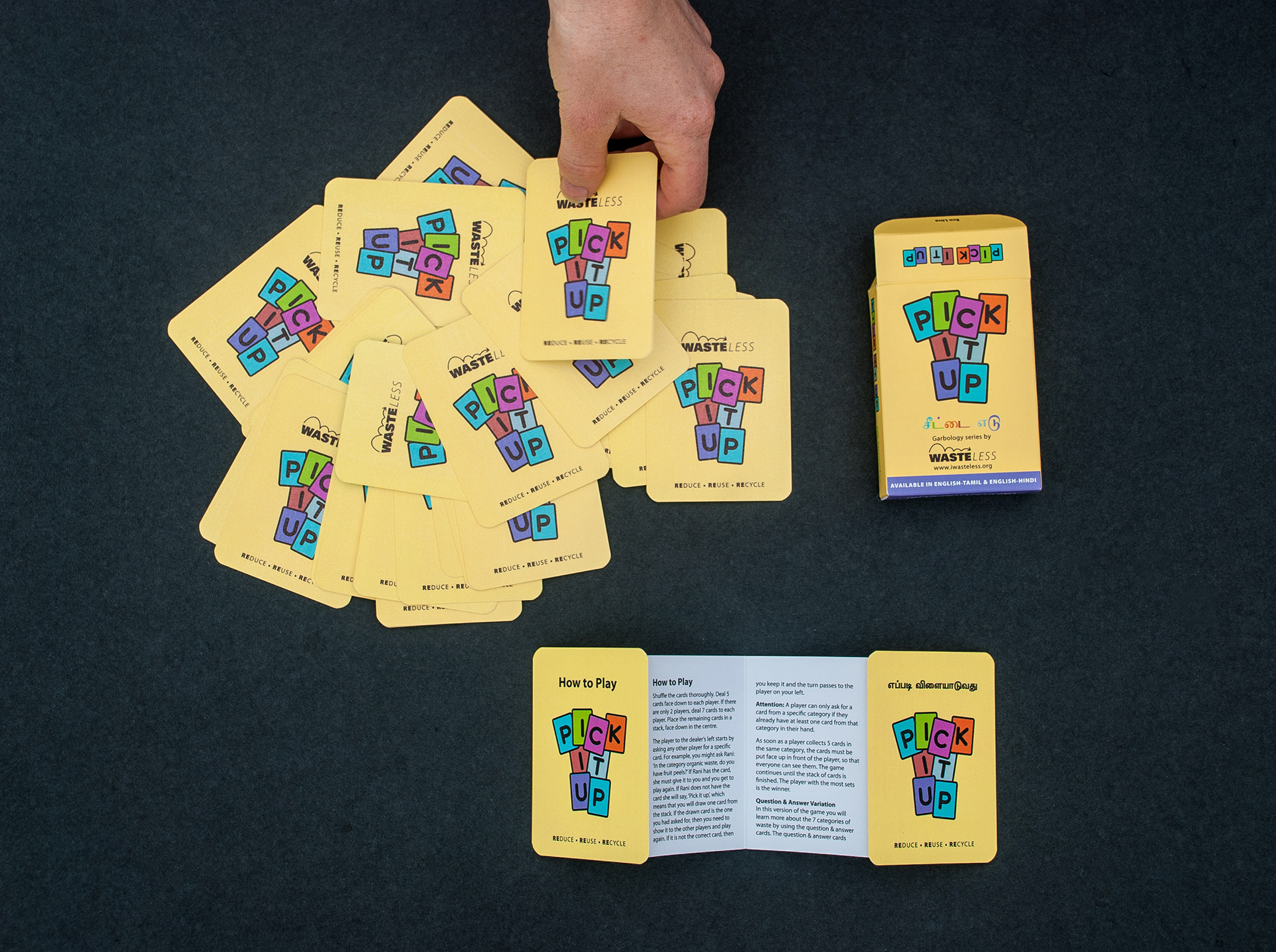 Identity Design for Pick It Up - a fun card game by WasteLess, Auroville. This is a game for everybody, through which one can learn to recycle, support waste pickers and save the environment.