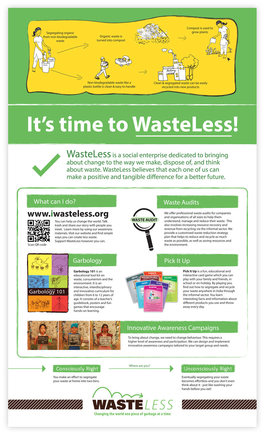 Exhibition panels designed to illustrate the vision of WasteLess. A non-profit social enterprise dedicated to bringing about change to the way we make, dispose of, and think about waste.